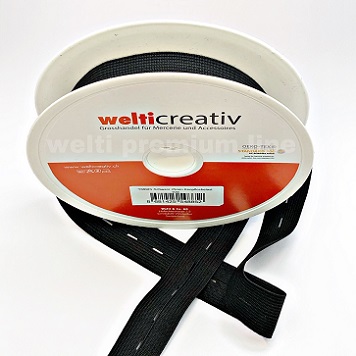 WELTICREATIV ELASTISCHES KNOPFLOCHBAND, GEHÄKELT-GEWIRKT, 25MM, SCHWARZ