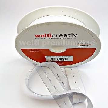 WELTICREATIV ELASTISCHES KNOPFLOCHBAND, GEHÄKELT-GEWIRKT, 25MM, WEISS
