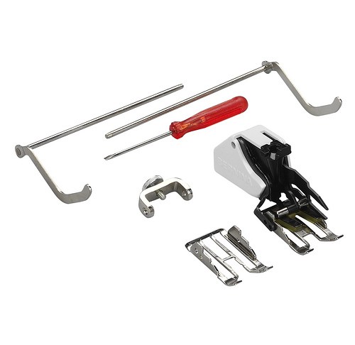 Der Obertransportfuss unterstützt den Stofftransport. Er ist besonders geeignet für das Maschinenquilten von geraden Linien und für das präzise Zusammennähen von schwer gleitenden oder elastischen Materialien, die zum Verscieben neigen oder die sich leiht ausdehnen lassen. Seine beiden Kantenlineale unterstützen zusätzlich das genaue Arbeiten.